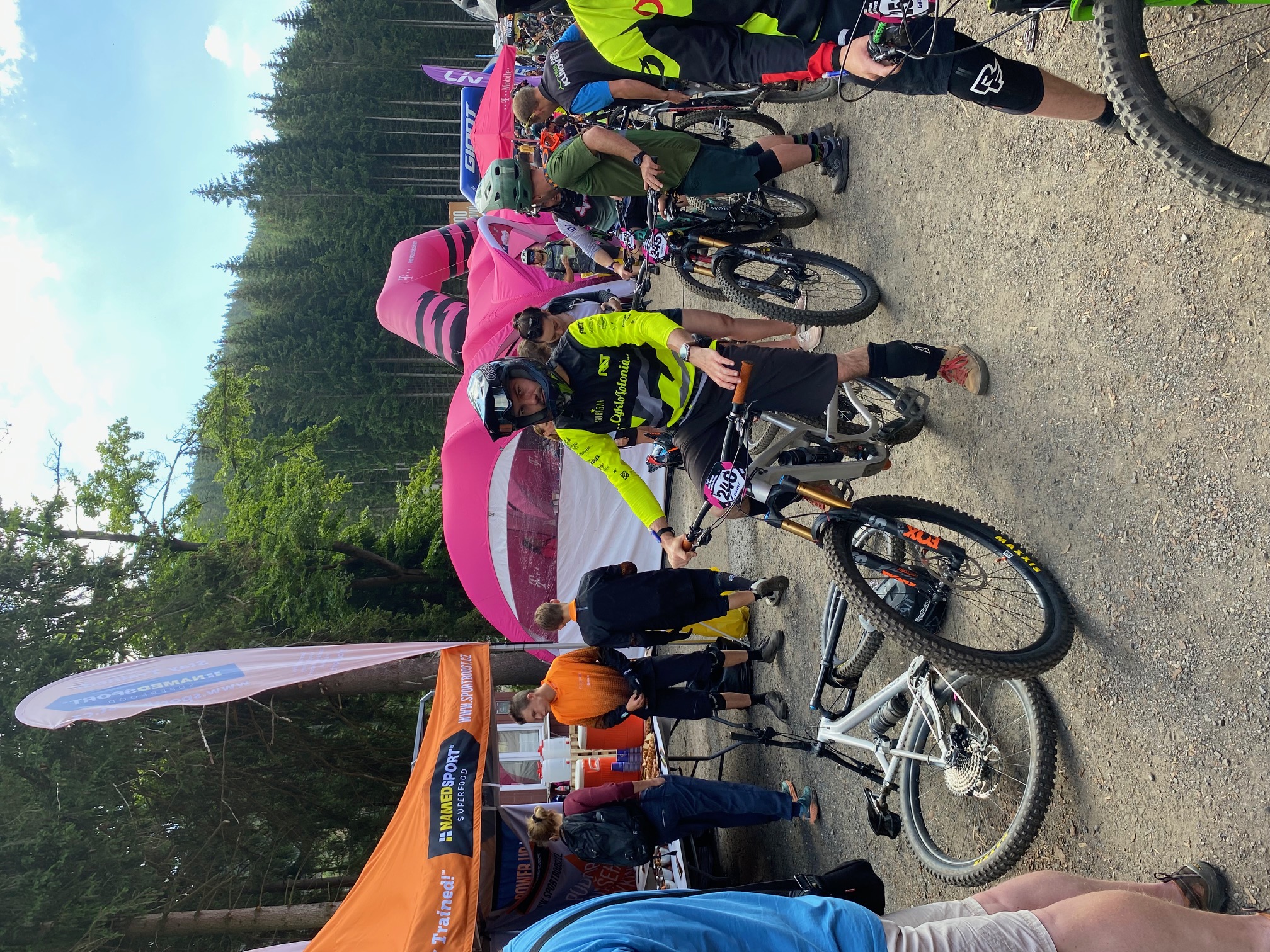 V sobotu se počasí výrazně mění k lepšímu a já trávím celé dopoledne v servisním stanu. Vzduch pomalu uniká přes svár ráfku, ale rozhoduji se nedávat duši a radši dofukovat kolo. Danův taťka půjčuje Márovi vidlici ze svého elektrokola (za co mu patří obrovský dík). Kola nám tedy nějak fungují a jdeme trénovat, začínáme na RZ5. Hodně mi připomíná styl Blinduro, zkoušíme různé stopy a shodujeme se, že to nemá smysl najíždět (co byla asi chyba, minimálně pro mě). Jedem tedy na RZ3 před kterou nás všichni varují jaký to je mordor. Postupně ladíme stopy a zanedlouho sjíždíme do cíle, ale žádný mordor nevidíme. Dan mezičasem v tréningu padá a přichází s oteklým loktem.