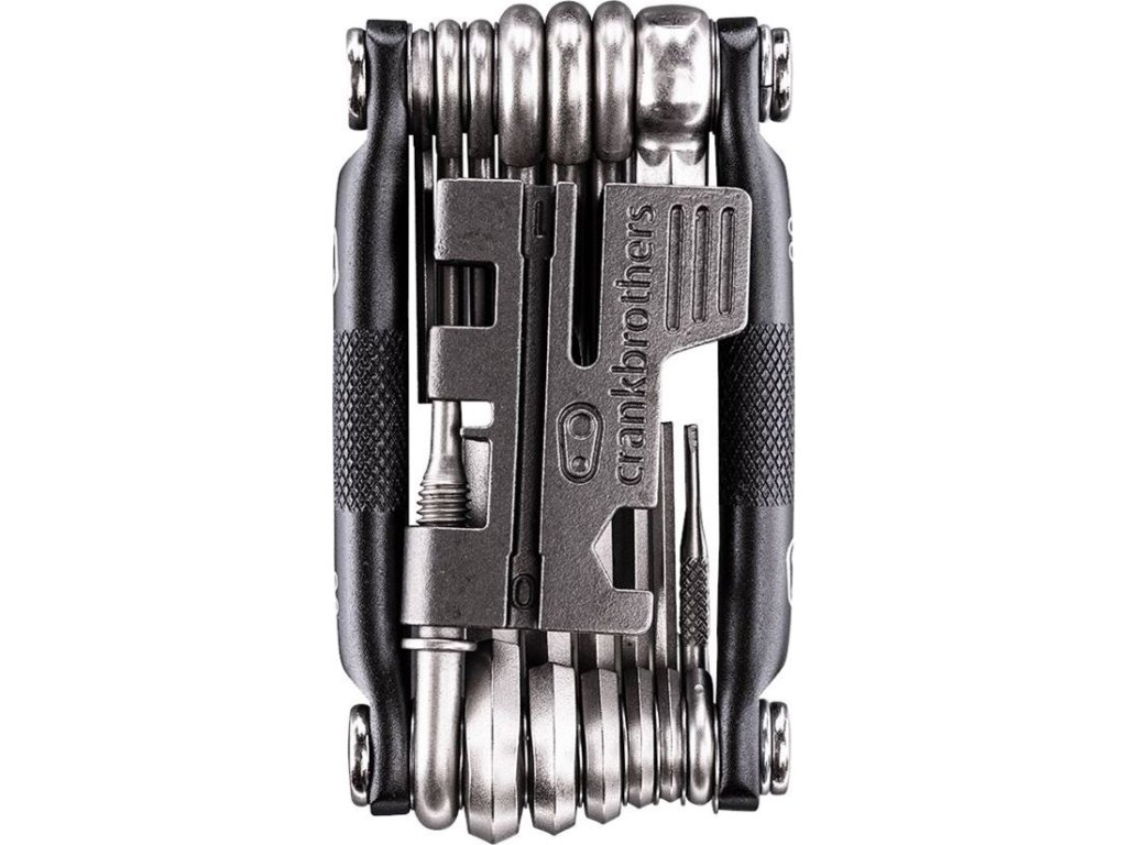nářadí vysokopevnostní ocel • nýtovač 8 / 9 / 10 / 11 /12 rychlostní řetězy • centrovací klíče #0, #1 a #2 • inbusy 2 / 2,5 / 3 / 4 / 5 / 6 / 8 mm • šroubováky křížový a plochý • Torx klíč T10 a T25 • integrovaný knotovač • klíč na ventilek • nástroj na rovnání disků