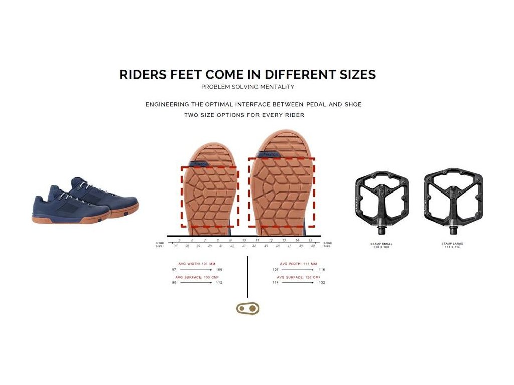 Špičkový platformový pedál ve dvou velikostech pro různě velké velikosti bot.