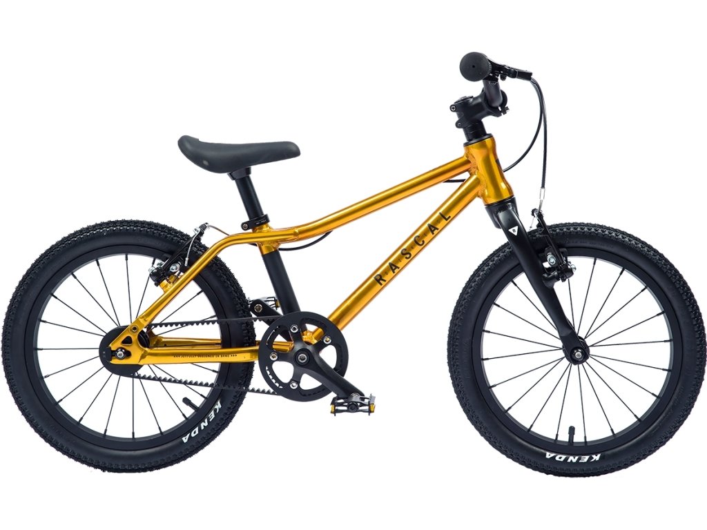Model Rascal 16 staví na lehkém hliníkovém rámu s dětskou geometrií, řemenovém pohonu a zúžené zadní stavbě i vidlici. Jedná se o klíčová technologická řešení, díky kterým si vaše dítě jízdu na kole velmi rychle osvojí a zamiluje.