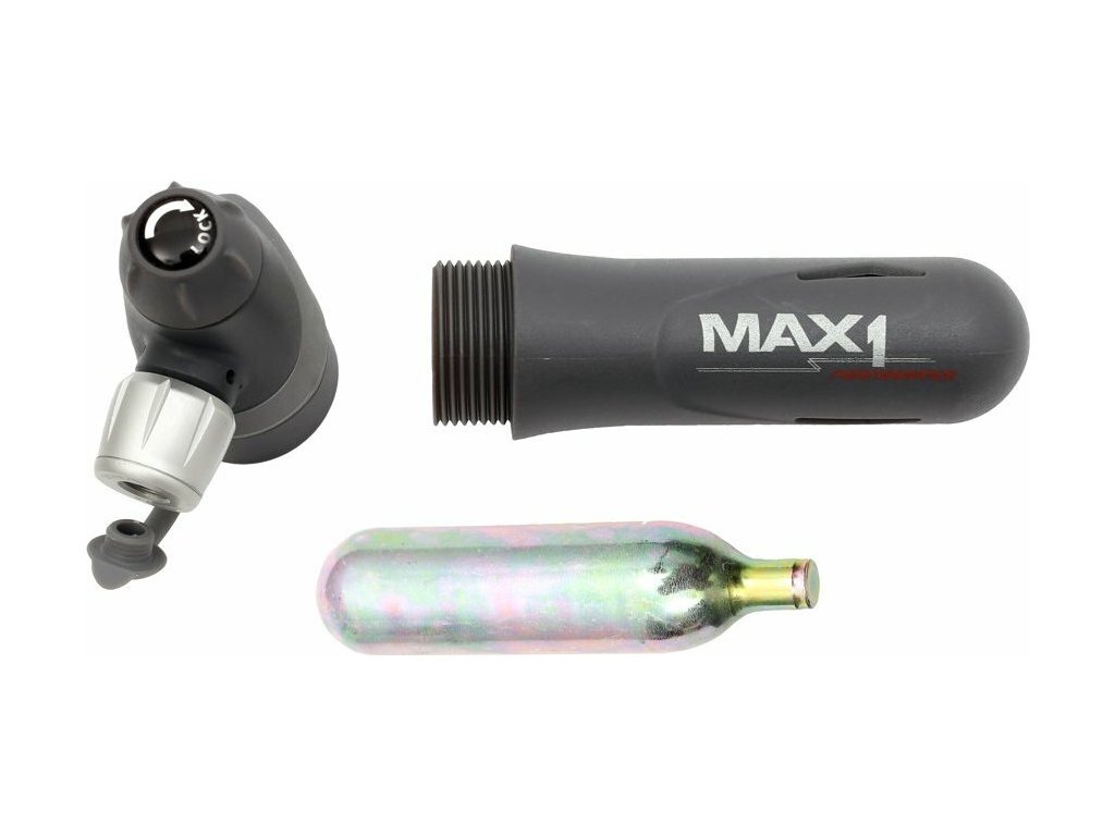 Kompaktní bombičková hustilka MAX1 Inflator s univerzální hlavou pro AV i FV ventil.