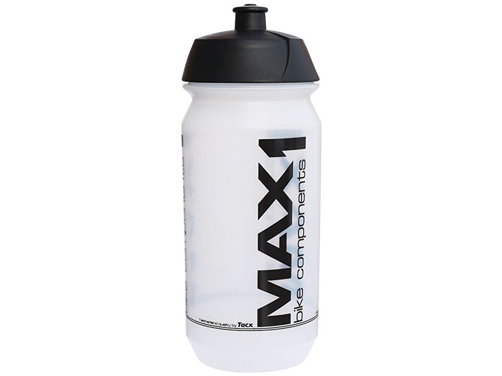 Lahev MAX1 od světového výrobce TacX, vyrobena v Evropě z recyklovatelného plastu, který je klinicky testován na zdravotní nezávadnost. Po zamáčknutí náustku s ním lze otočit a tím "uzamknout" pro případný nechtěný únik obsahu lahve do batohu.