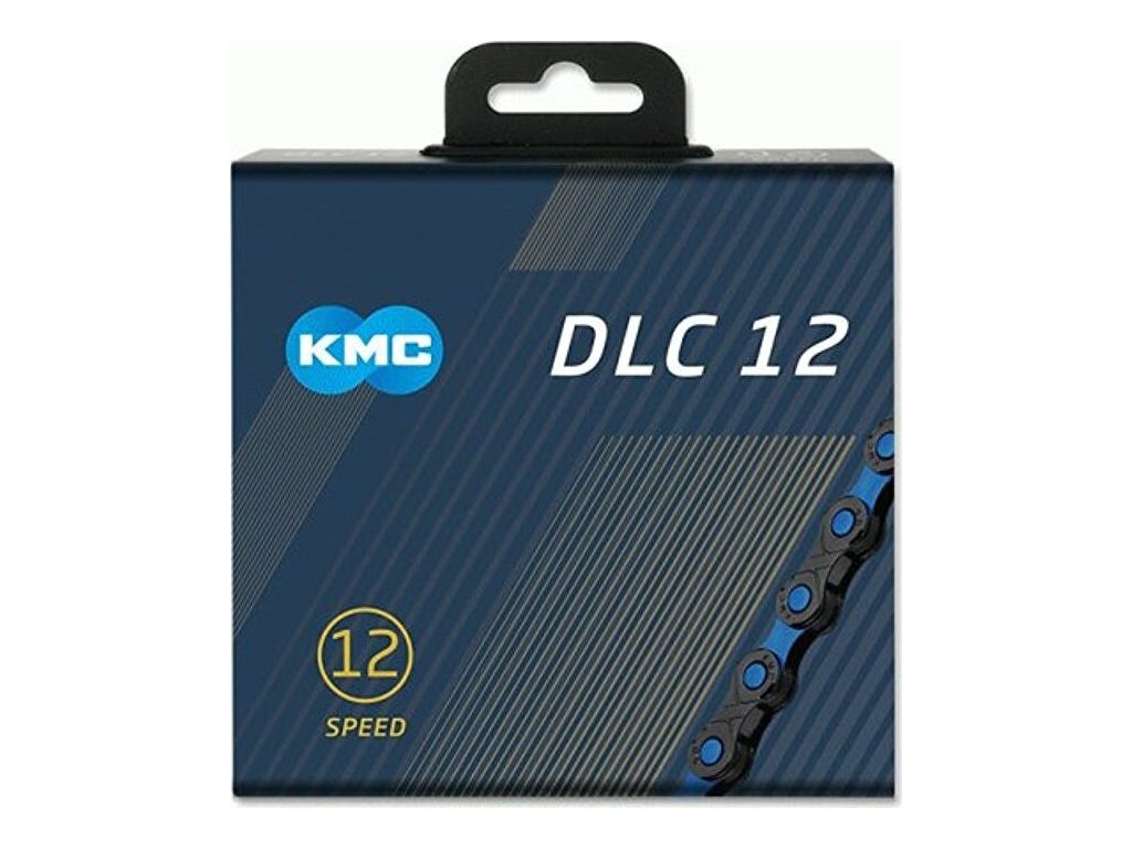 řetěz KMC DLC 12 modro/černý, vhodný na řazení Shimano/Sram/Campa, nesměrový, úprava DLC, 126 článků, DLC, včetně spojky