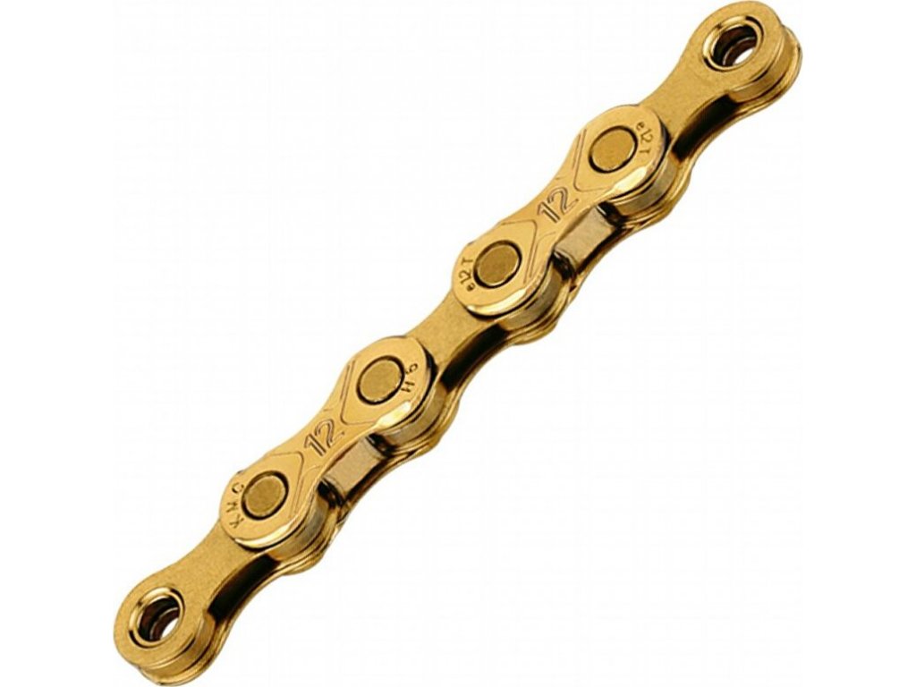 Řetěz KMC X-12-Gold, vhodný na řazení Shimano/Sram/Campa, nesměrový, 130 článků, včetně spojky