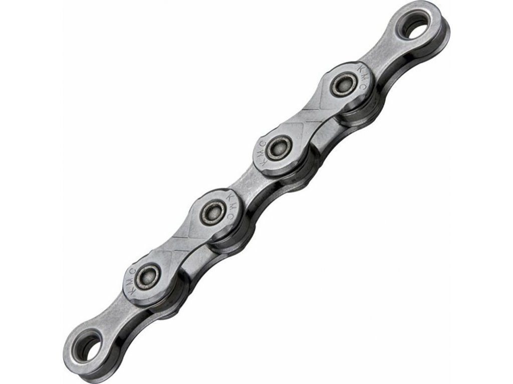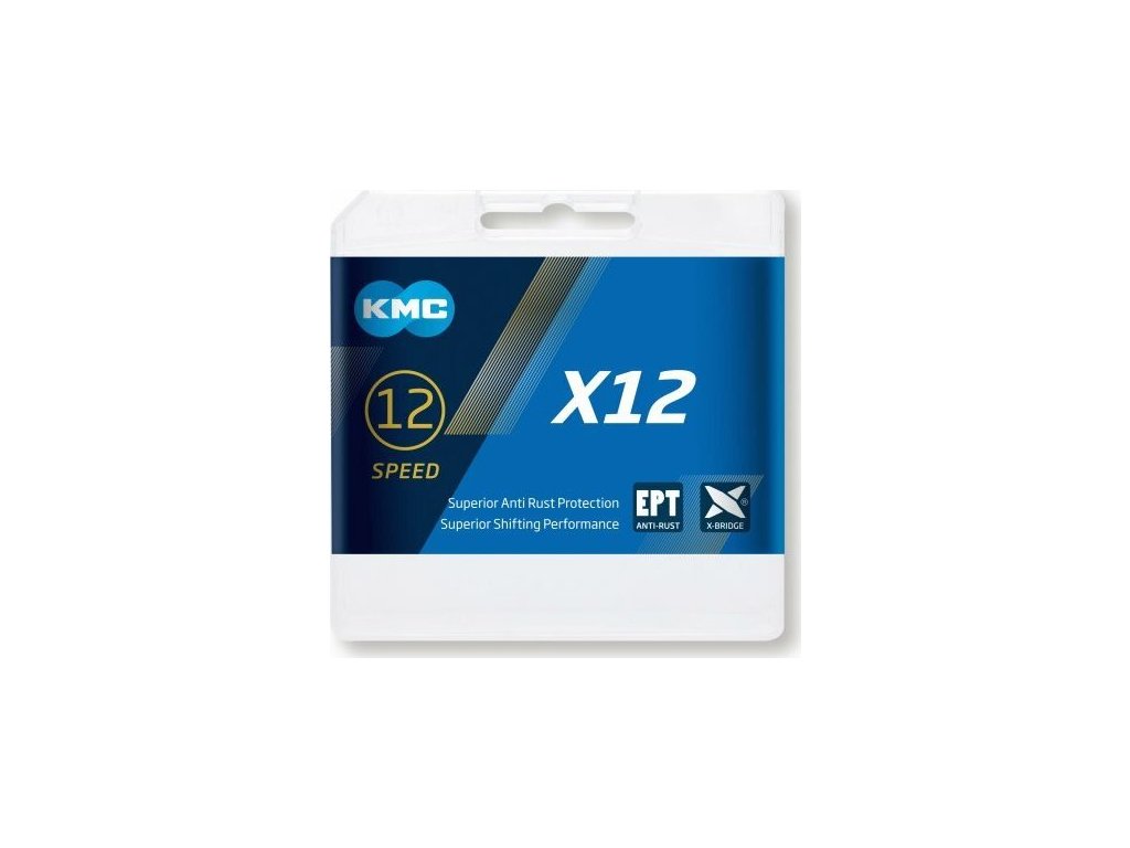 řetěz KMC X-12-šedý, vhodný na řazení Shimano/Sram/Campa, nesměrový, úprava EcoProTeQ, 126 článků, 268 gramů, včetně spojky