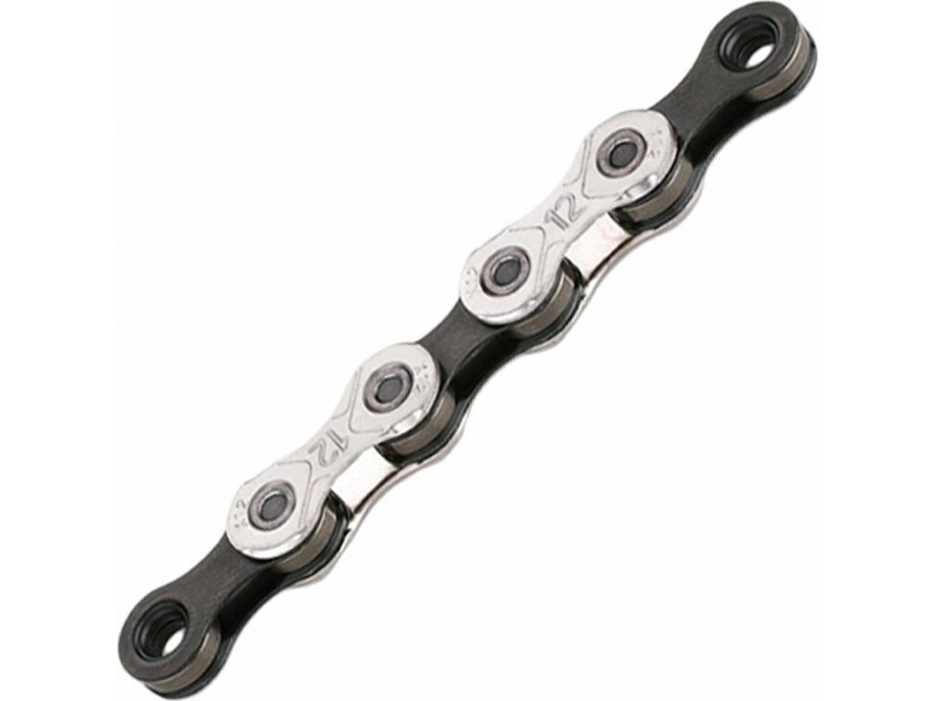 řetěz KMC X-12 Ni vhodný na řazení Shimano/Sram/Campa, nesměrový, úprava černění a niklování, 126 článků, včetně spojky, baleno v krabičce