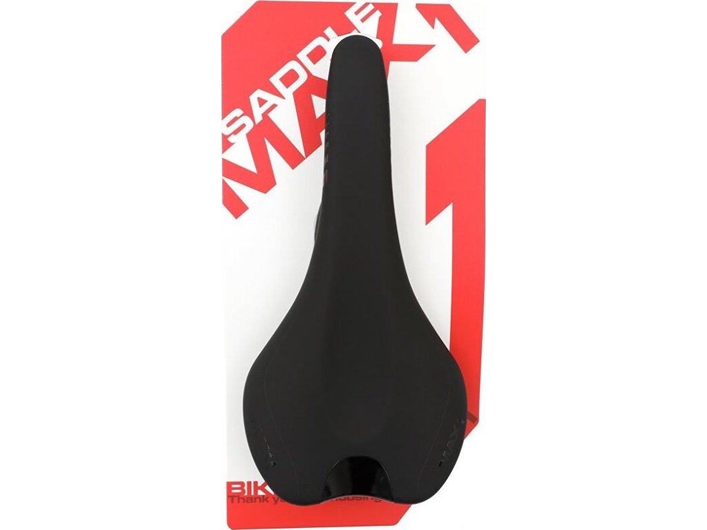 závodní sedlo MAX1 s karbonovými ližinami a karbonovou platformou, hmotnost 210 g, rozměry sedla 280×140 mm