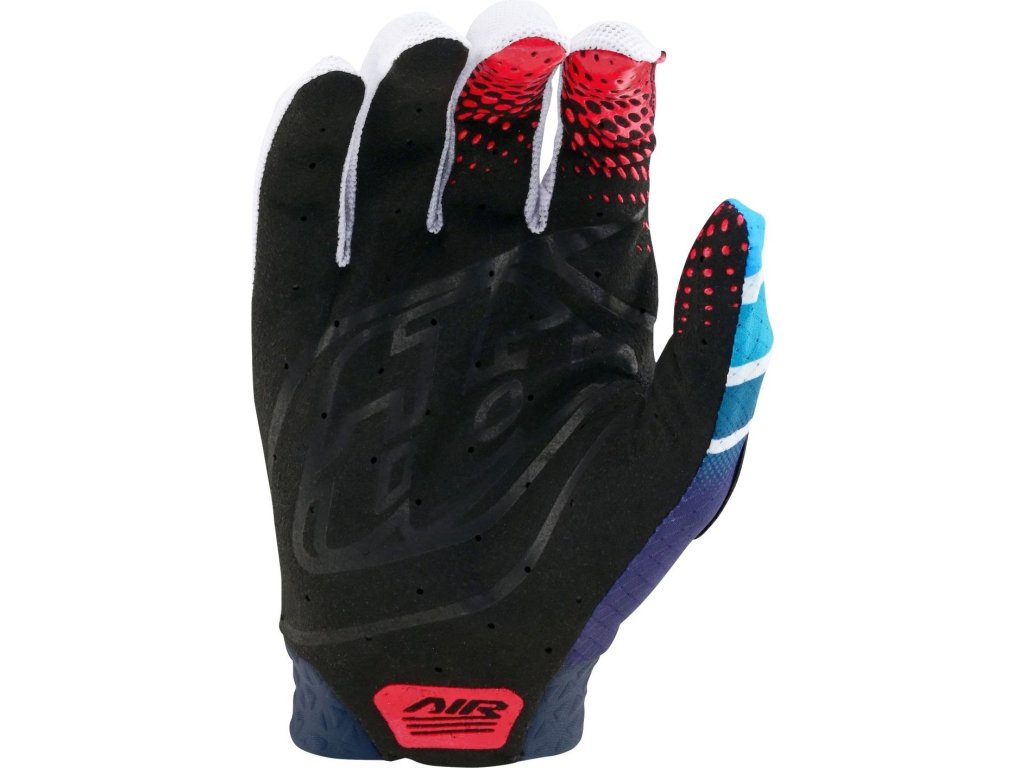 Rukavice Air mají kompresně tvarovanou manžetu a jednovrstvou dlaň s laserově perforovanými větracími otvory. Po celém povrchu je použita mikrosíťovina pro lepší odvětrávání. Silikonový potisk na prstech pro jistý úchop brzdové páky.