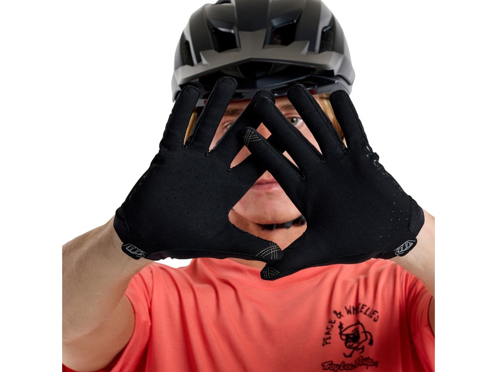 Rukavice Troy Lee Designs podléhají důkladnému vývoji a testování, než se dostanou do rukou elitních sportovců po celém světě. Rukavice Flowline mají zapínání na suchý zip a jednovrstvou dlaň s laserem perforovanými větracími otvory. Materiál použitý na svršek rukavic pak zajišťuje vysokou prodyšnost. Ukazováček a palec jsou kompatibilní s dotykovým displejem.
